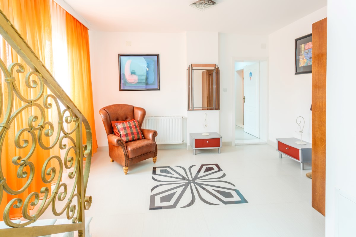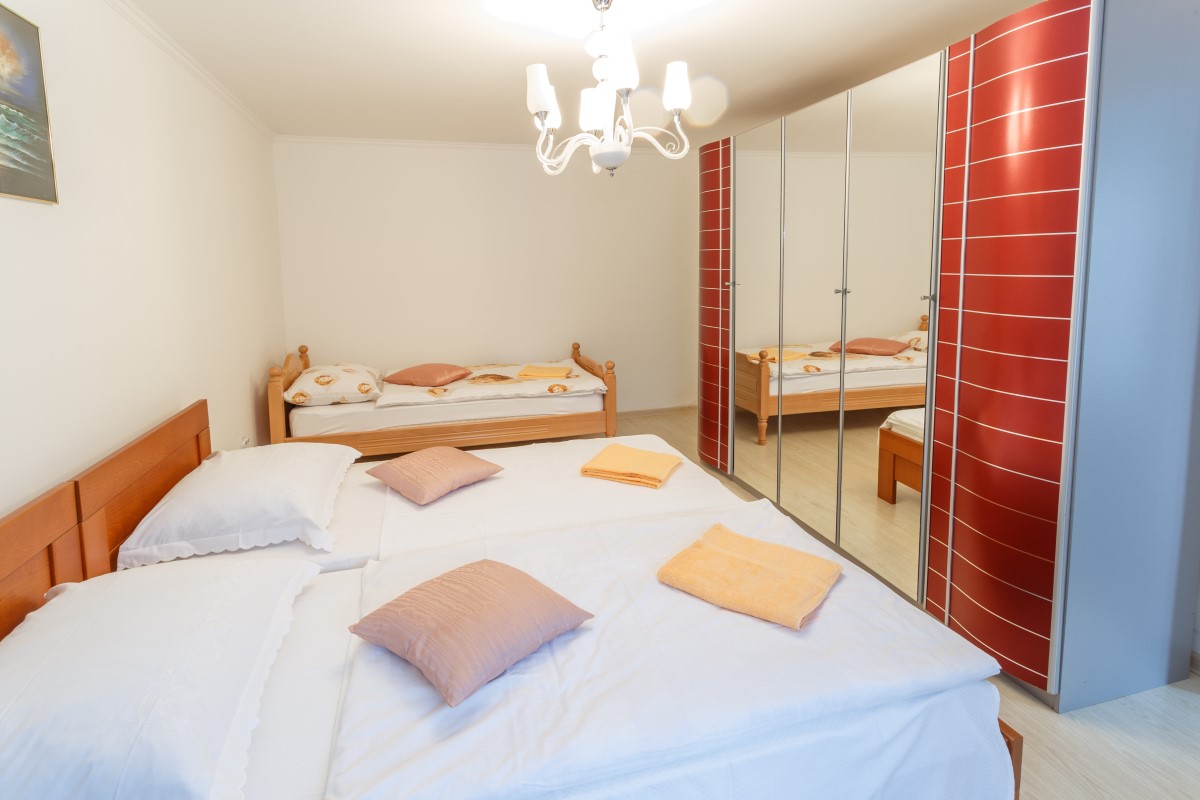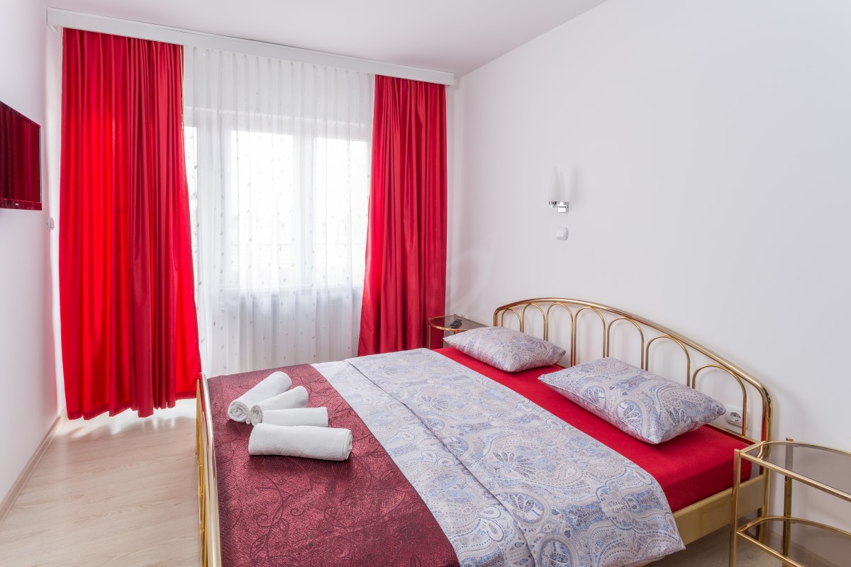 Apartman Inspiracija nalazi se na prvom spratu porodične kuće. Predviđen je za smeštaj do 4 osobe. Čine ga dve spavaće sobe. Svaka od njiih raspolaže bračnim krevetom, TV LED i klima uređajem. Krasi ga prostrano i moderno kupatilo, terasa i potpuno opremljena zajednička kuhinja.